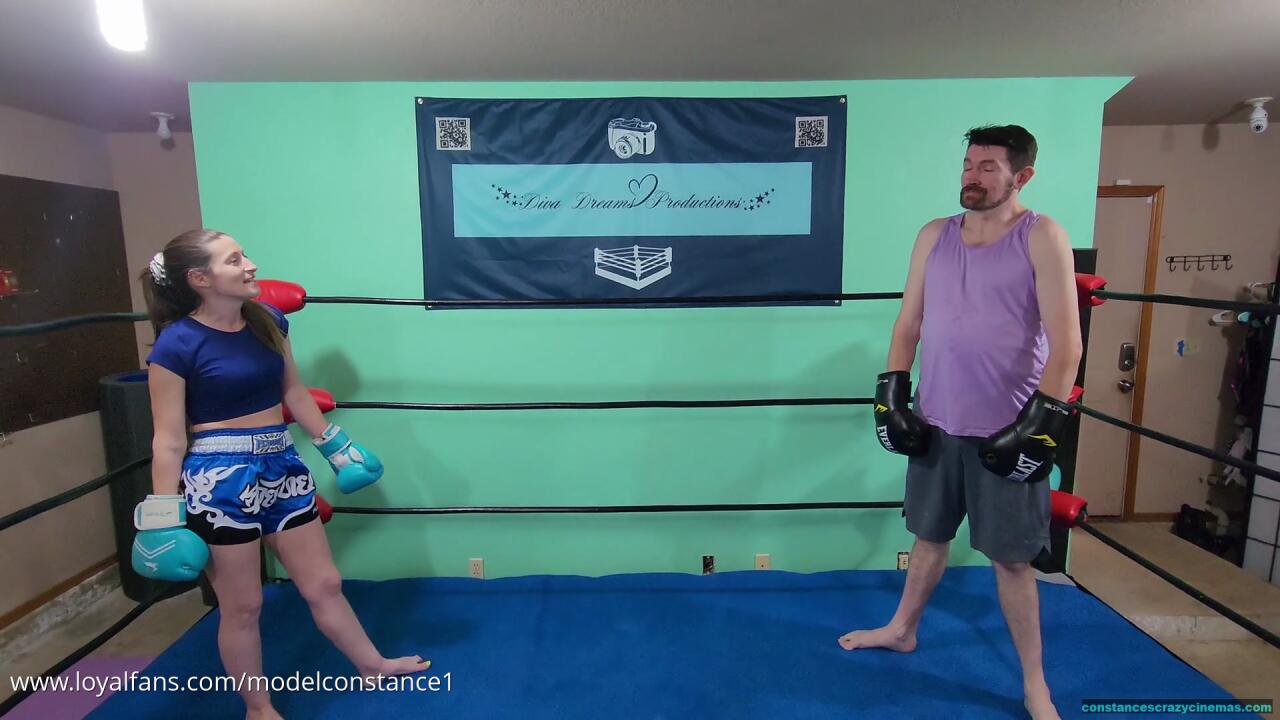 Gene climbs to his feet, and Constance taunts him. But his boxing skills are clearly no match and after some unimpressive throws of his own, Constance clobbers him again and down he goes! She assaults him relentlessly while he staggers around the ring How much punishment can poor Gene take in this 10 minute boxing domination bout?