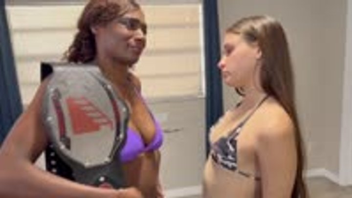 Newish bae angel has been making a name for herself recently and after she beat both kody evans and honey she called out our champion paris, saying she’s coming for the belt. well, here she gets her wish. the new bae may not be as confident as she seemed as she arrives with foreign objects, saying sometimes you gotta play dirty. as with all our title matches, this is an i quit match. before we are underway angel pepper sprays the champ then ties her hands behind her. demanding she quit, angel sets to beating and hurting the disadvantaged champ. will these dirty tactics work? will we have a new champion? will paris somehow escape and overcome these odds? all we can tell you is one bae gets a terrible beating until she finally coughs out i quit.