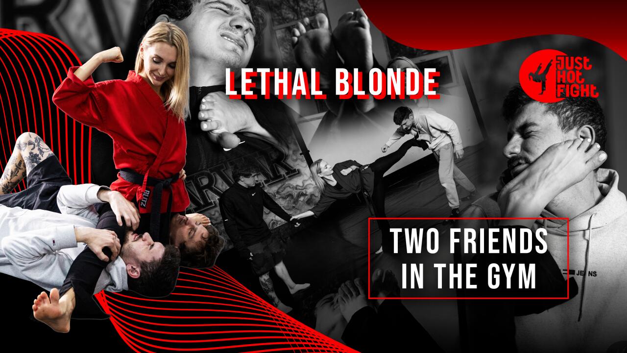 The stunning blonde was practicing karate. Suddenly, some drunk guys showed up and started making fun of her.
